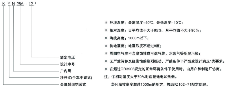 KYN28A-12型户内交流金属铠装移开式开关设备。它适用于三相交流额定电压1 2kv,额定频率50Hz电力系统,用于接受和分配电能并对电路实行控制、保护及监测。