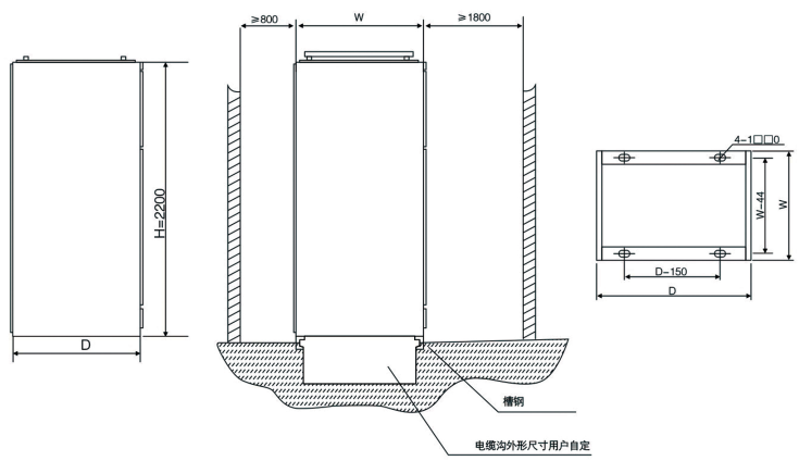 ※ 馈线柜和电动机控制柜设有的电缆隔室,既提高了电缆的使用稳靠性,又大地方便了用户对电缆的安装与维修。电缆隔室有二个宽度尺寸(240mm和440mm)可供选用或柜后出线(不占柜宽度),视电缆数量、截面和用户对安装维修方便的要求而定。